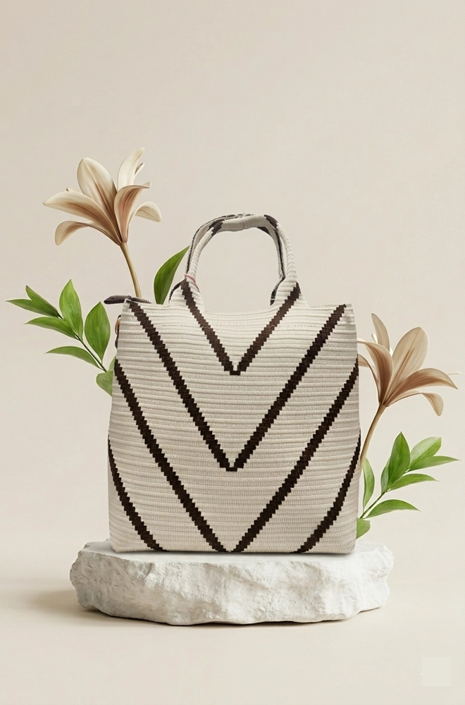 Su formato tipo tote mini ofrece un equilibrio perfecto entre capacidad y comodidad, ideal para llevar lo esencial sin resultar voluminoso.