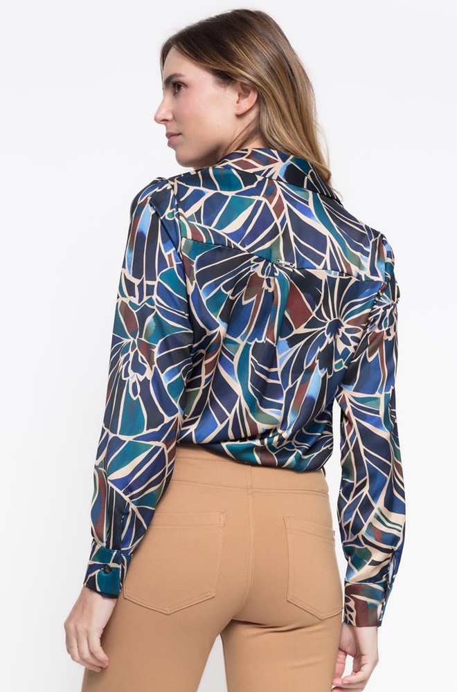 Camisa Helen Cms Love | Satinada floral azul elegante