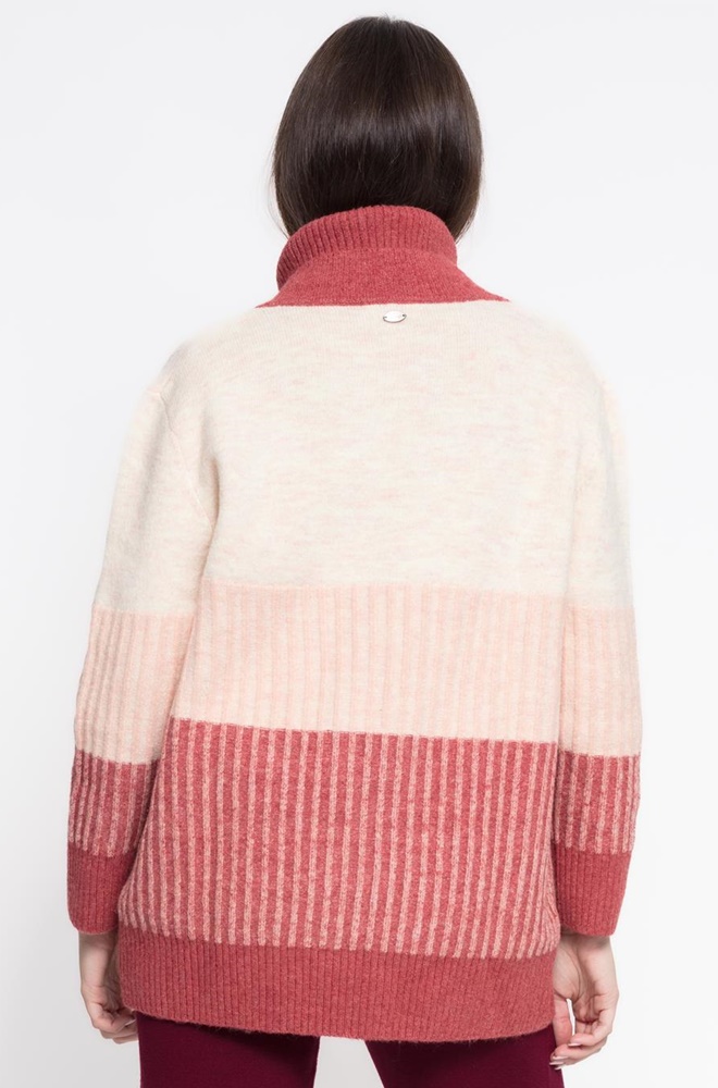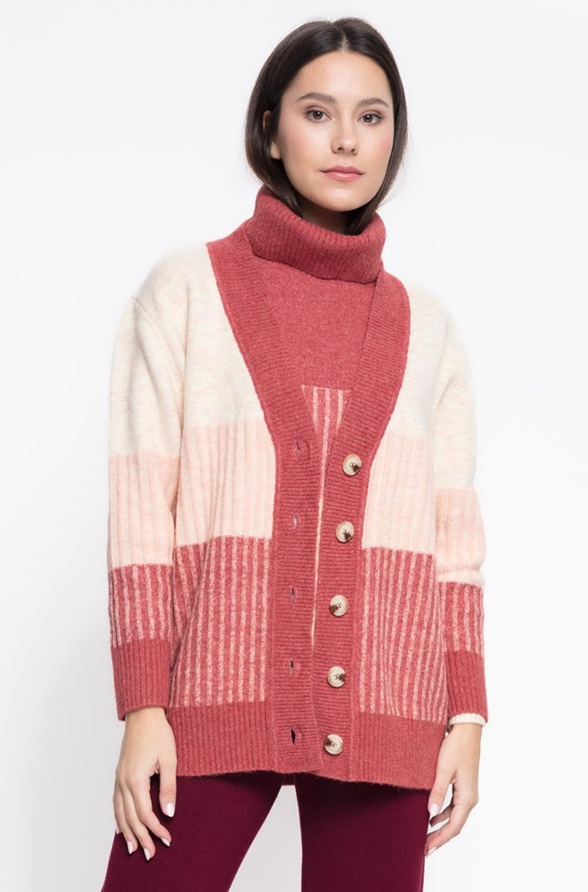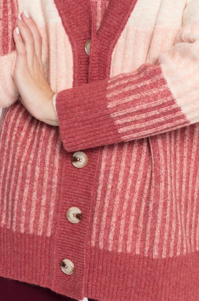 Cárdigan de punto Olivia de Cms Love, suave, calentito y con ese aire dulce que combina con todo. De corte recto y ligeramente holgado, con mangas caídas y cuello pico. Su diseño en franjas anchas mezcla tonos burdeos, rosita y blanco nata, creando un look actual y fácil de combinar.