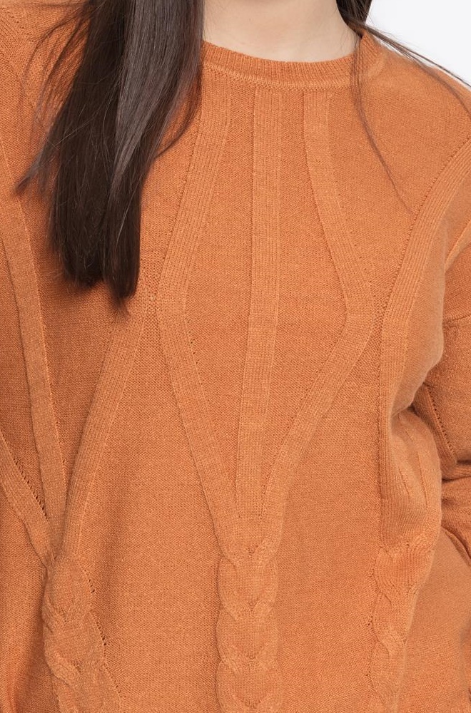 Su corte recto con pequeñas aberturas laterales en el bajo aporta movimiento y frescura, lo que lo convierte en una pieza muy favorecedora para distintas siluetas. Además, las mangas caídas y el cuello redondo hacen que sea un jersey fácil de llevar, perfecto tanto para un look casual como para un conjunto más cuidado.